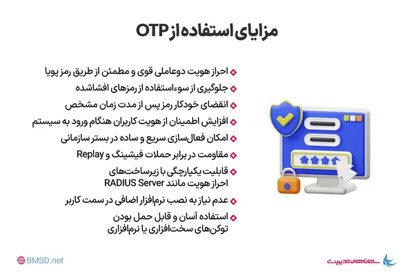 از جمله مزایای استفاده از OTP در سازمان میتوان به موارد زیر اشاره کرد: